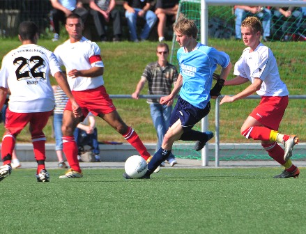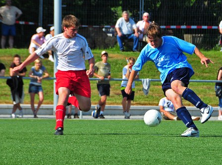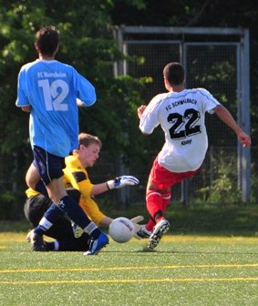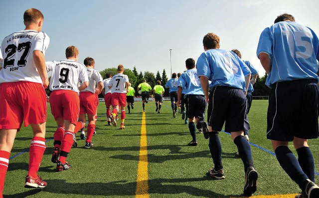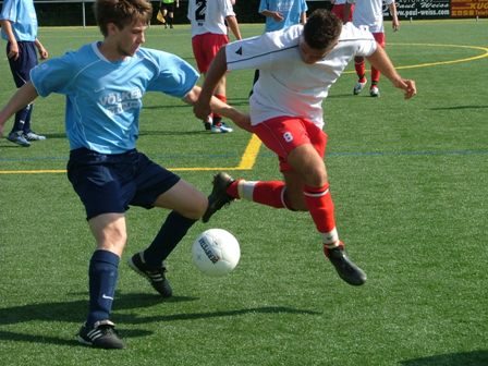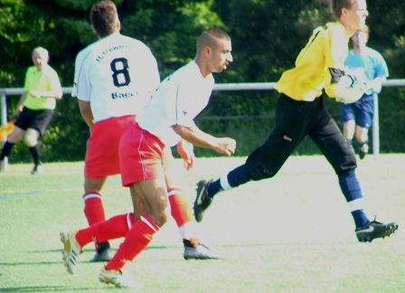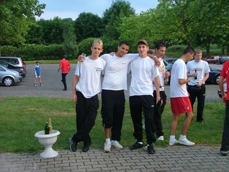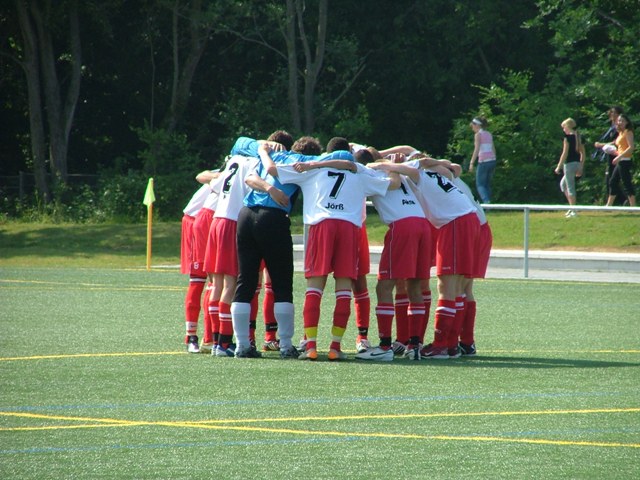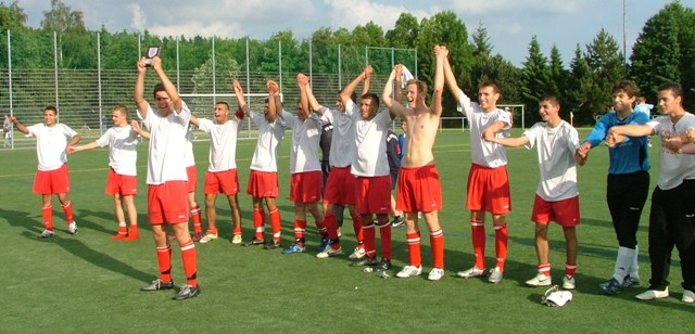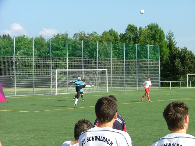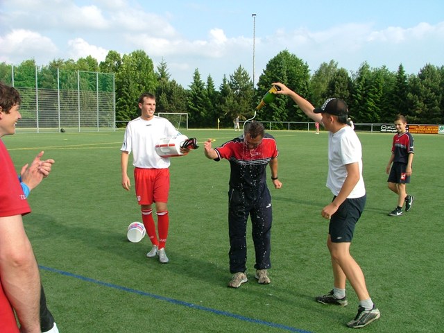31.05.08: Da es in dieser Saison nicht nur eine Kreisliga gab, sondern erstmals wegen der Vielzahl an Mannschaften zwei Kreisliga-Gruppen, mußte ein Entscheidungsspiel zwischen dem Ersten der Gruppe 1, dem FC Schwalbach und dem Ersten der Gruppe 2, dem FC Marxheim, über die Kreismeisterschaft und vor allem über den Bezirksliga-Aufstieg entscheiden. Die Begegnung fand in Bremthal statt. Auch wenn wieder einige Spieler fehlten bzw. wegen mangelnder Fitness fehlen mussten, so war der Kader heute doch sehr stark. Die Schwalbacher lieferten von Beginn an die beste Leistung ab, die in dieser Saison zu sehen war. Es wurde in der Defensive taktisch diszipliniert gespielt und nach vorne raus ansehnlich kombiniert. Folgerichtig gelang Thilo die Führung, mit der es in die Pause ging. Nach der Halbzeit wurde der Druck auf den Gegner erhöht. Wieder war es der heute bestens aufgelegte Thilo, der traf. Dann wurde es nochmal kurzzeitig spannend, da Marxheim einen Strafstoß zugesprochen bekam. Aber Torwart Mattze machte genau das, was der Trainer vorausgesagt hatte: Er parierte den Schuß prächtig. Damit war klar, daß das Spiel nicht mehr aus der Hand gegeben werden würde. Anil erhöhte und schließlich traf noch Geburtstagskind Maxi. Mit diesem verdienten Sieg konnte der heißersehnte Aufstieg klargemacht werden und entsprechend groß war der Jubel. Im Anschluß an die Begegnung wurde dann noch im Vereinsheim gefeiert. Endstand: 4:1 Tore: 2 x Thilo, Anil, Maxi Aufstellung: Matthias Röse, Thilo Henß, Denis Weber, Christian Vizal, Janis Klenk, Mohamed Khayr, Rafet Erilmez, Hakan Aksu, Waldemar Mut, Anil Alpay, Ertan Bagci, Mourad Berkhli, Maximilian van der Bij, Tobias Oleinik, Florian Jörß |