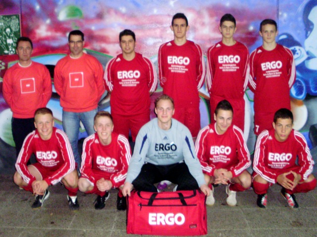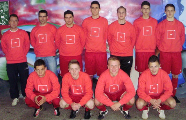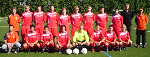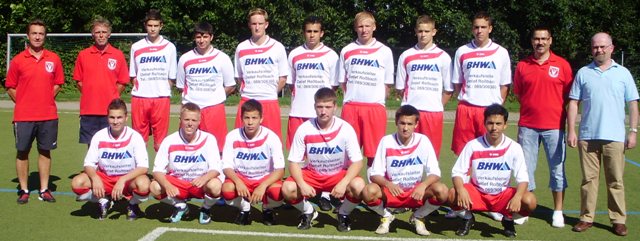Stehend, von links: TW-Trainer Josef Dreker, Lukas Piecha, Ismail Büyükyarma, Niko Sianavas, Konstantin Kühn, Pascal Weigelt, Oli Jörß, Arif Aydin, Apostolis Demseris, Trikotsponsor Thomas Tuntsch von GeckoLogic, Trainer Thomas Seehöfer; vorne: Co-Trainer Rainer Mühlenbeck, Sebas Cabrera, Hans-Peter Görlinger, Francesco Cosenza, Thomas Bauermeister, Lukas Geulen, Christian Seehöfer, Anselm Dreker